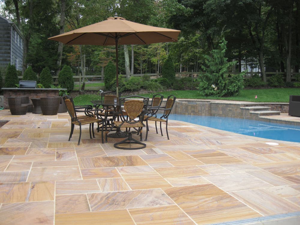 A medium white pattern patio, walkway and pool deck sandstone. Light hints of grey keep this from being pure white which can be too bright in full sun.